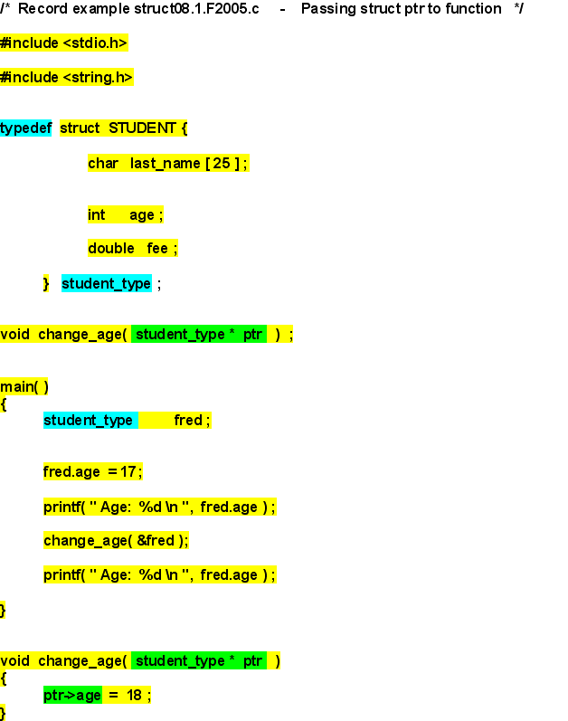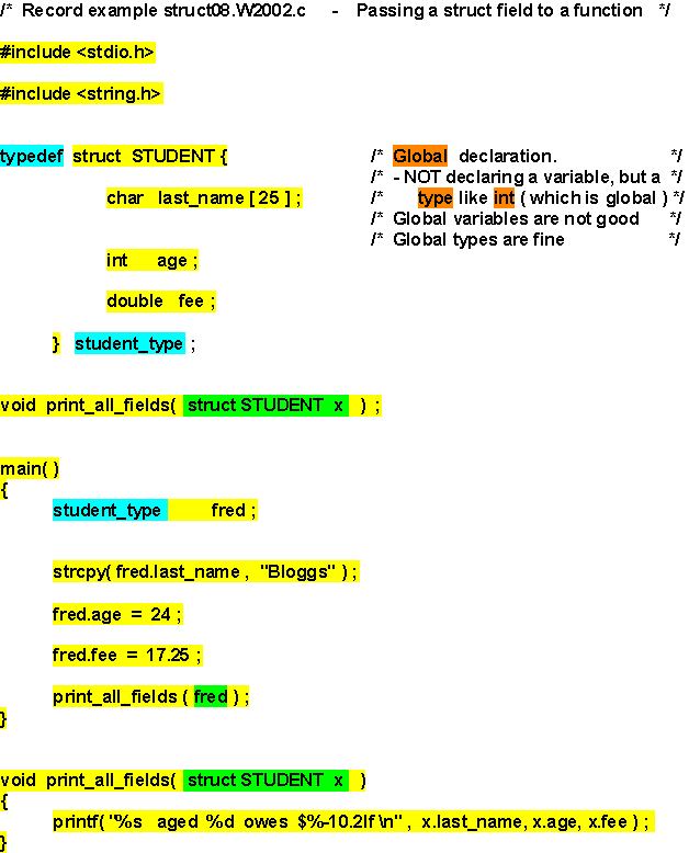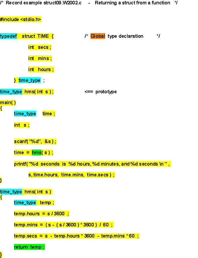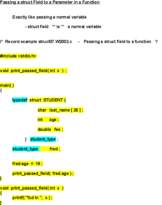 Note 9.6.2: Passing an Entire Struct to a Function - Global Type Declaration     Example 7