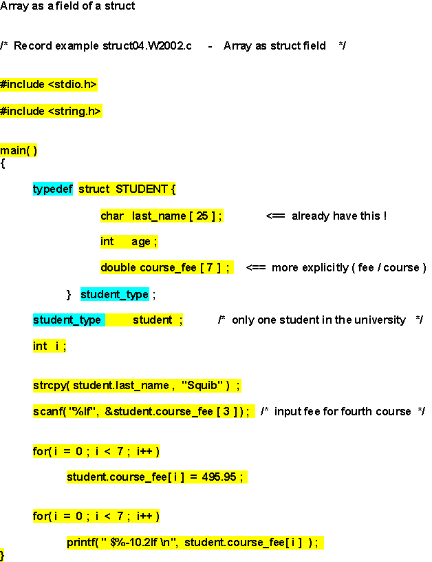 Note 9.5.2: Structs Containing Arrays    Example 4