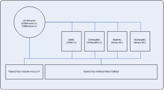 The WalkMC and MotSeqMC are library motion commands that can be used by Tekkotsu behaviors to make the robot walk and perform motion sequence. (Please refer to the sections about Walking and Motion Sequences for information about how these MCs can be used).